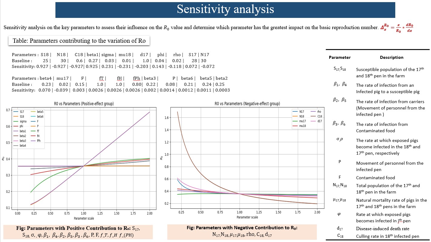 - Compute force of infection via contact, personnel movement, and feed routes.
